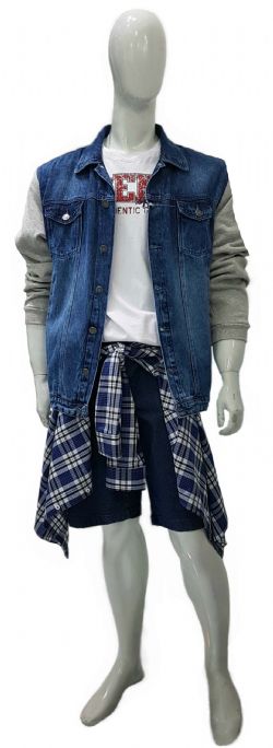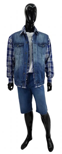Jaqueta Plus Size Jeans Ref 02556 / Camisa Xadrez Ref 03049 / Bermuda Plus Size Jeans Ref 02806