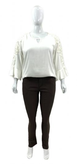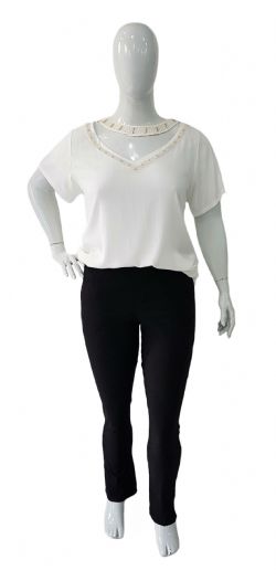 Blusa Plus Size de Linho Pedraria Ref 03088 / Calça Plus Size Bengaline Streesh Ref 02983